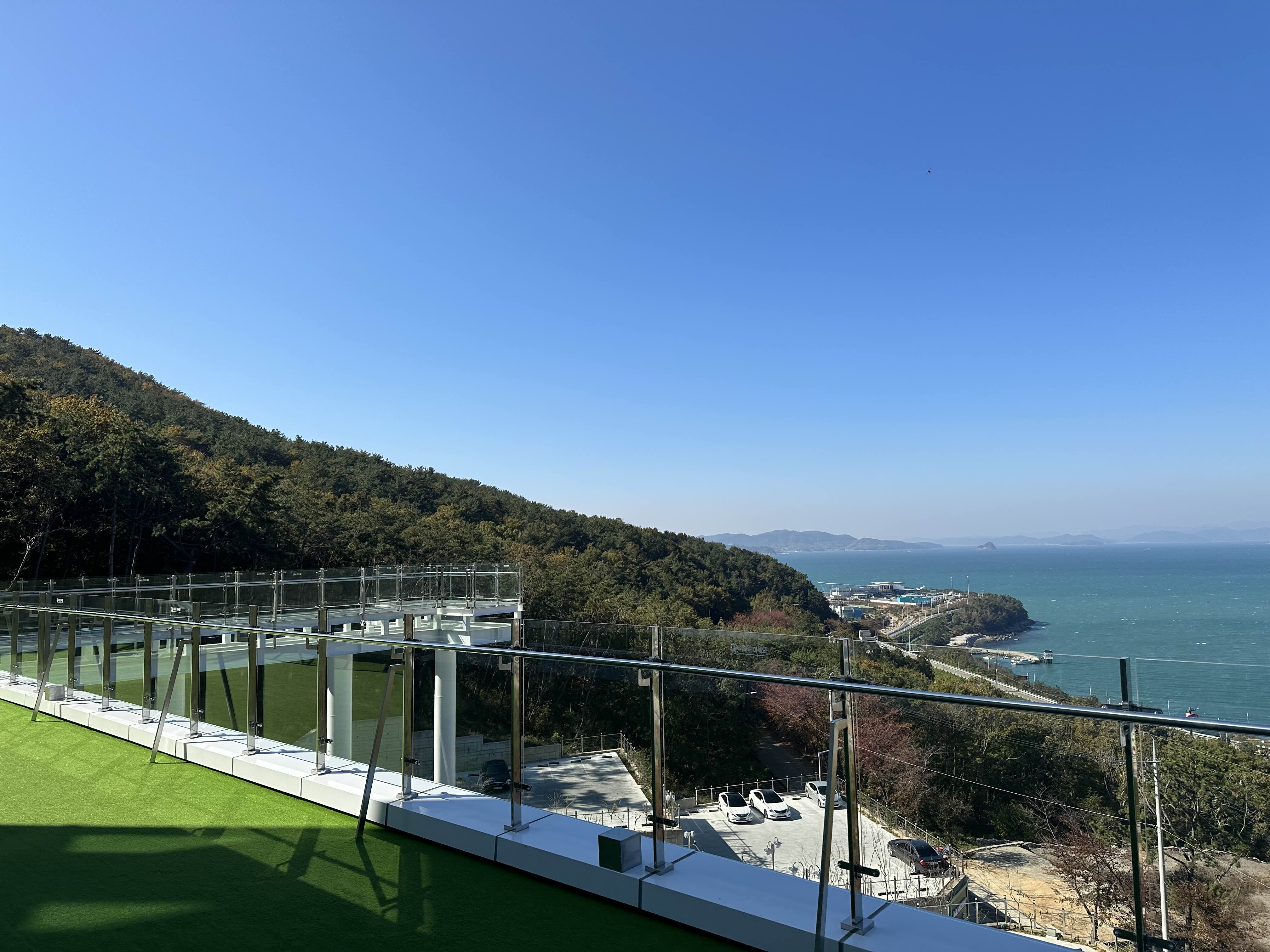 테라스로 나가면 훨씬 뻥 뚫린 뷰를 볼 수 있고 인조잔디로 바닥이 꾸며져 있습니다.